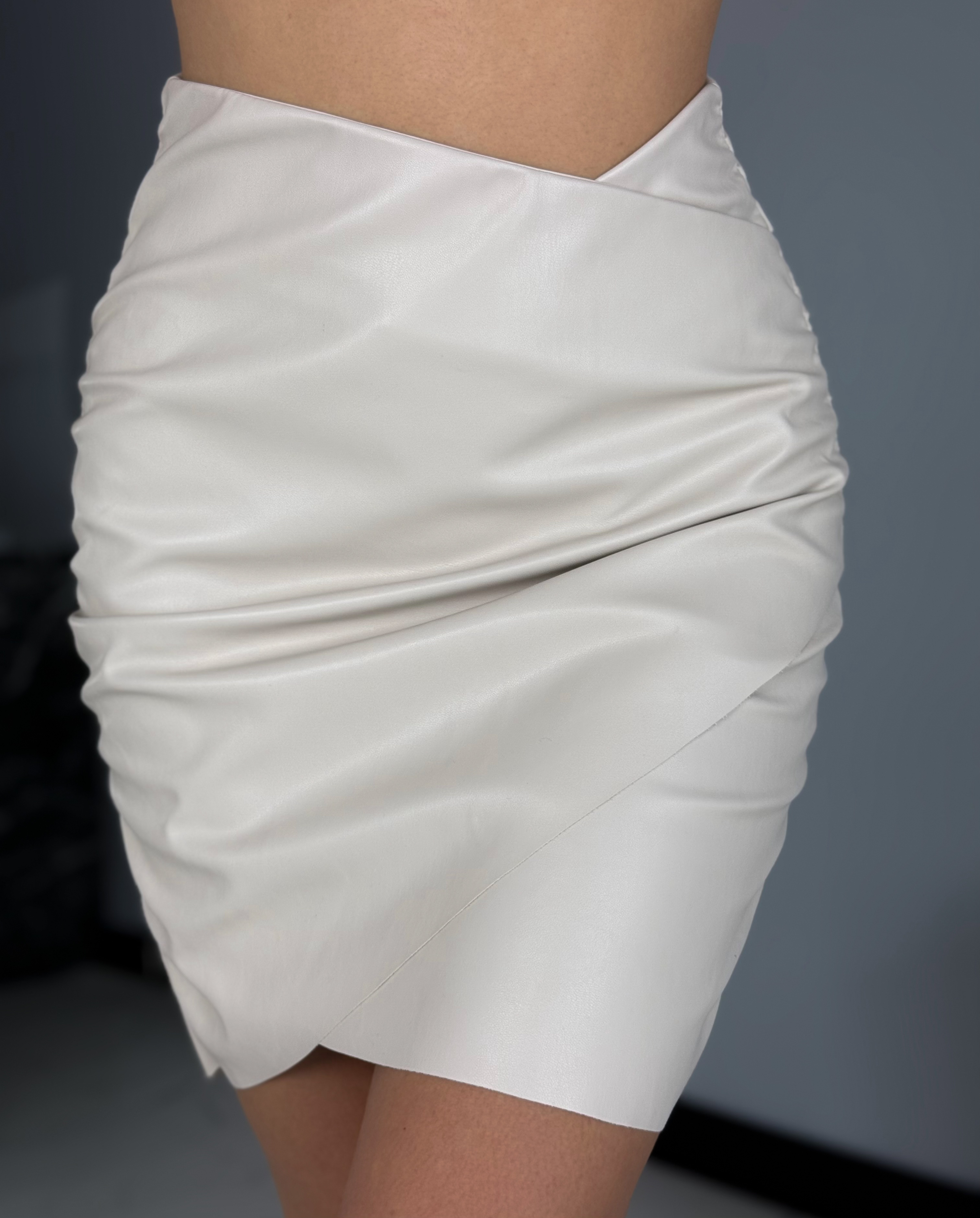 Beez kunstnahast miniseelik on tagant kroogitud on ideaalne valik naistele, kes soovivad oma enesekindlust riietuse kaudu väljendada. Klassikaline ja ajatu stiil teeb sellest seelikust mitmekülgse garderoobi põhielemendi. Seda saab kanda nii elegantsetel puhkudel kui ka vabadel koosviibimistel, nähes alati välja stiilne ja šikk. Valge kunstnahast miniseeliku pikkus on kohandatud kehakumeruste rõhutamiseks, säilitades samal ajal mugavuse ja liikumisvabaduse. Elastne vöökoht kohandub ideaalselt figuuriga, tagades mugavuse terveks päevaks, pannes teid igas olukorras erakordselt tundma.