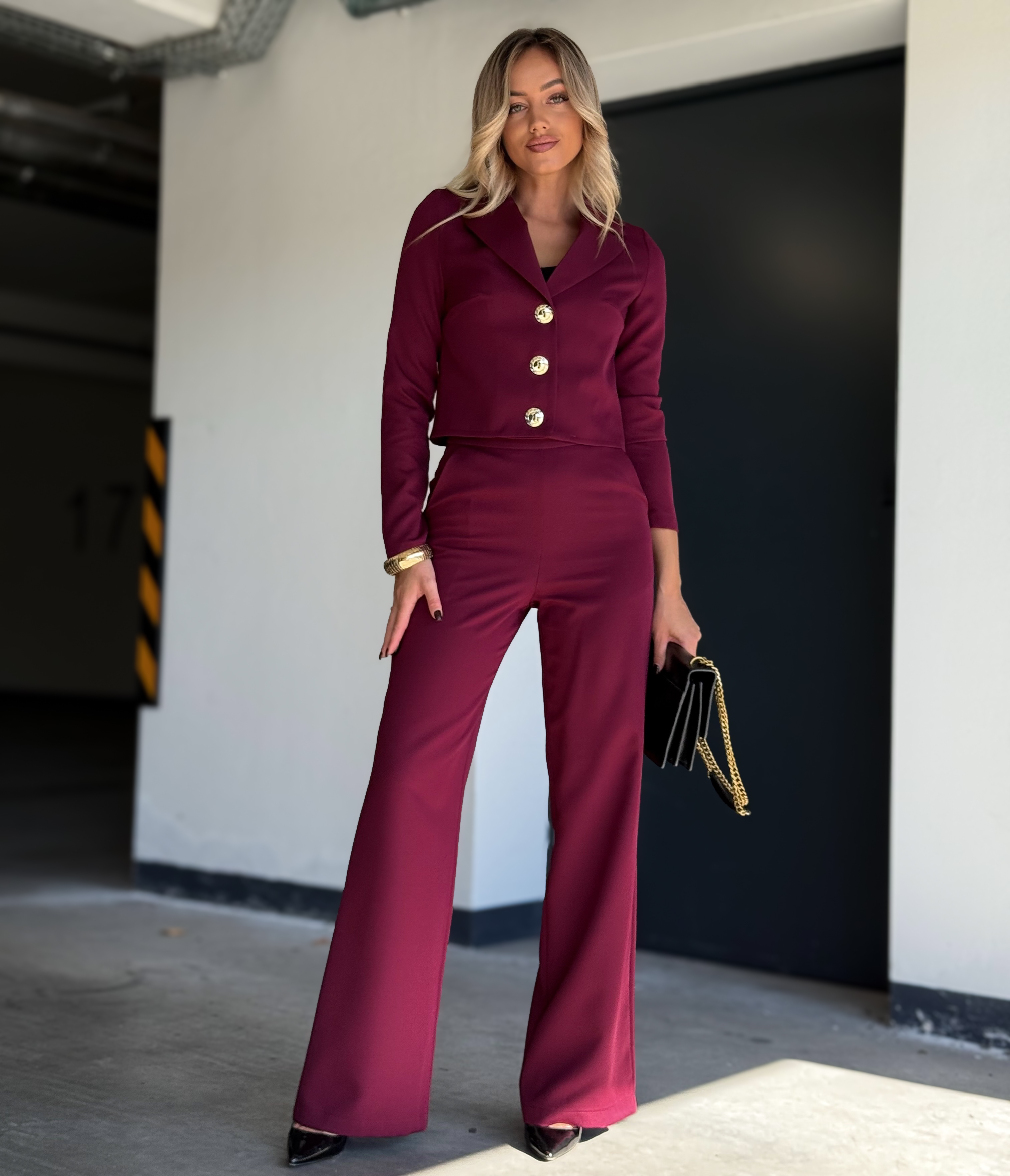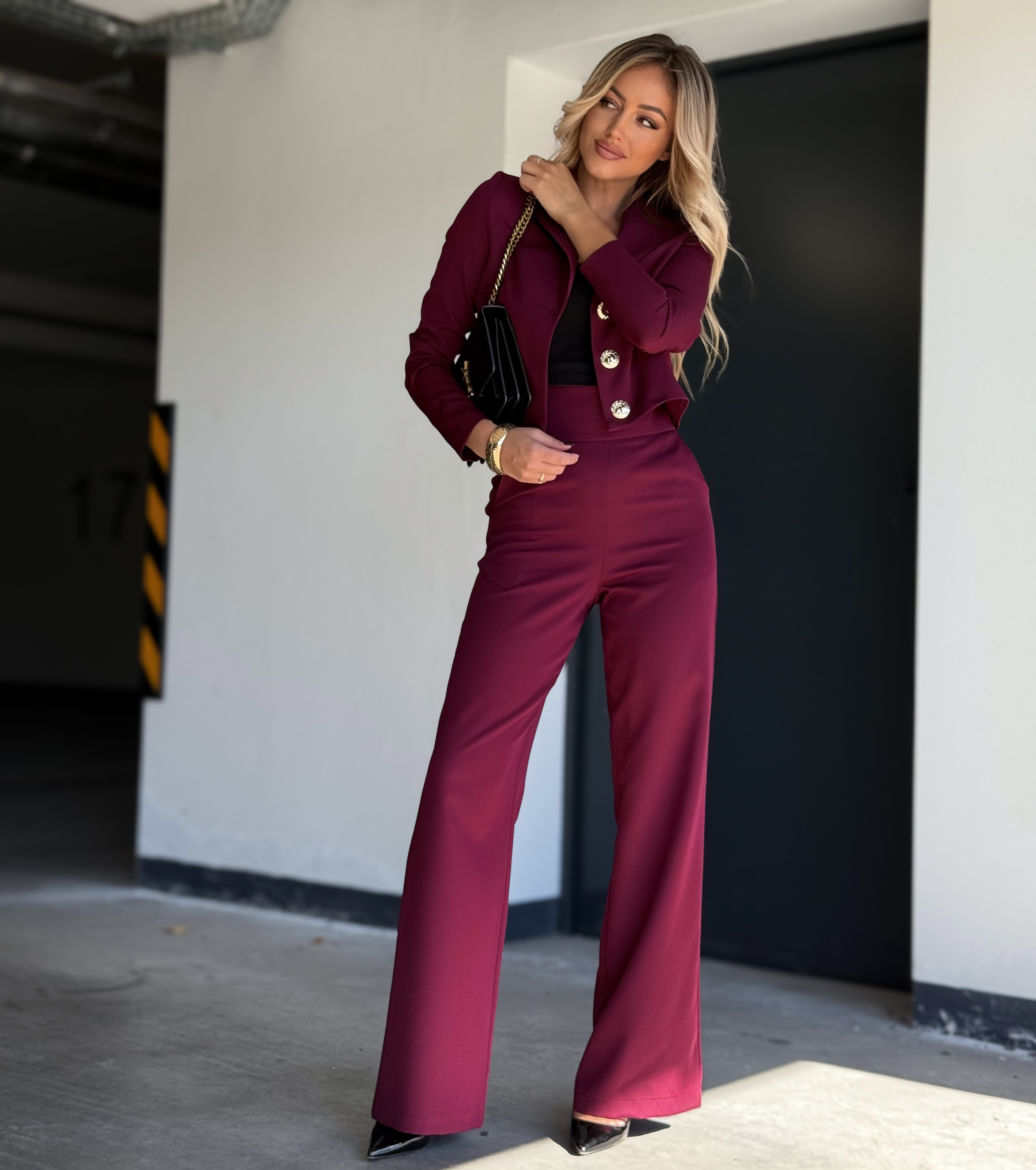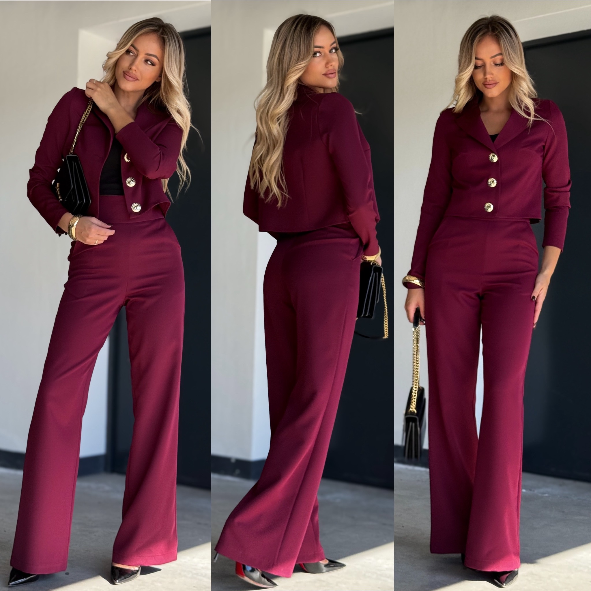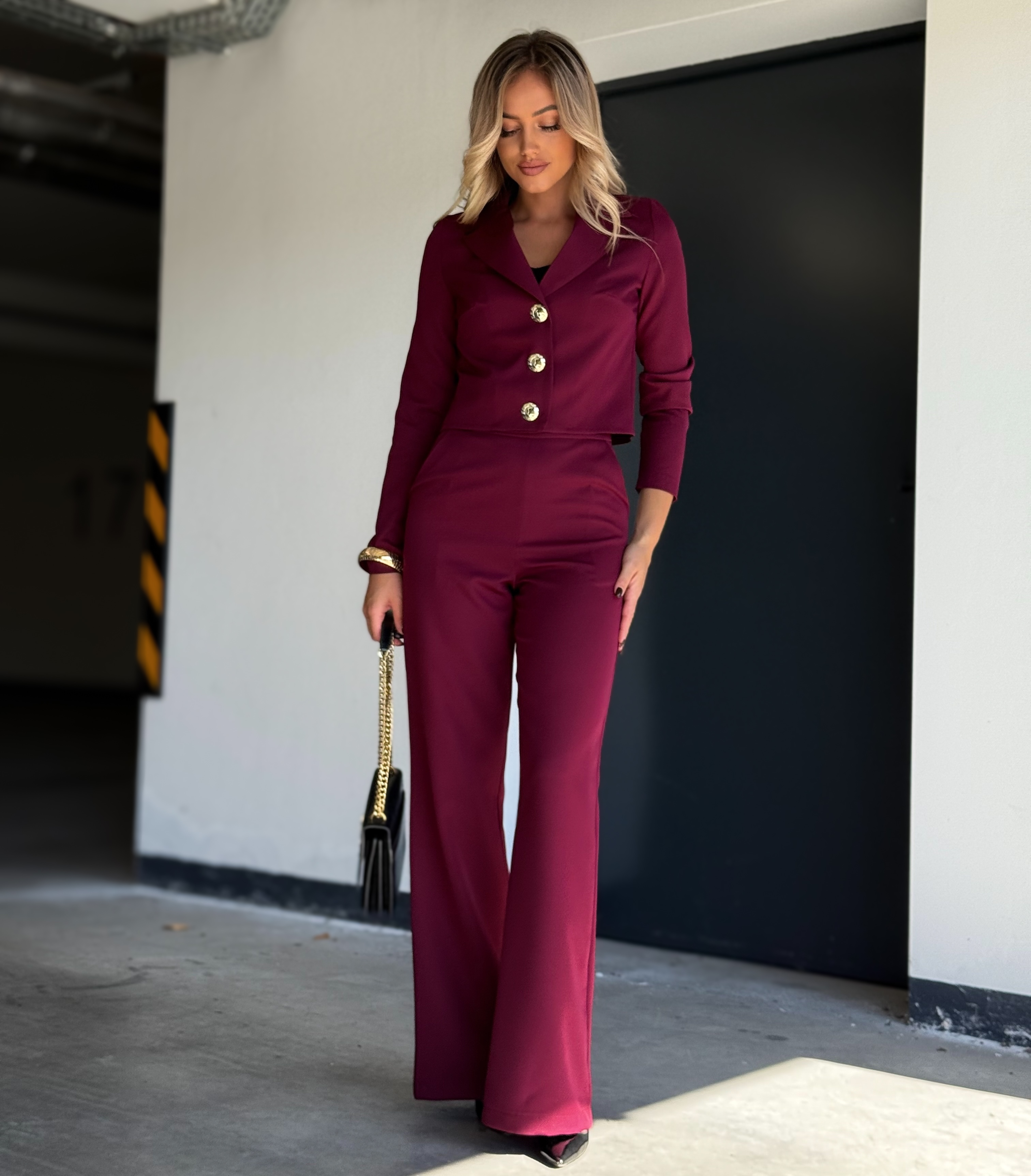 See komplekt on ideaalne mudel naistele, kes hindavad stiilset välimust. Valmistatud kõrgeima kvaliteediga materjalidest, garanteerib vastupidavuse ja mugavuse igas olukorras. Komplekt koosneb lühikesest kuldsete nööpidega jakist ja kõrge vöökohaga pükstest, mis lisavad kogu riietusele elegantsi. Komplekt ei anna mitte ainult moekat välimust, vaid ka istub ideaalselt. Komplekt sobib ideaalselt kontorisse, väljas käimiseks või erilisteks sündmusteks.