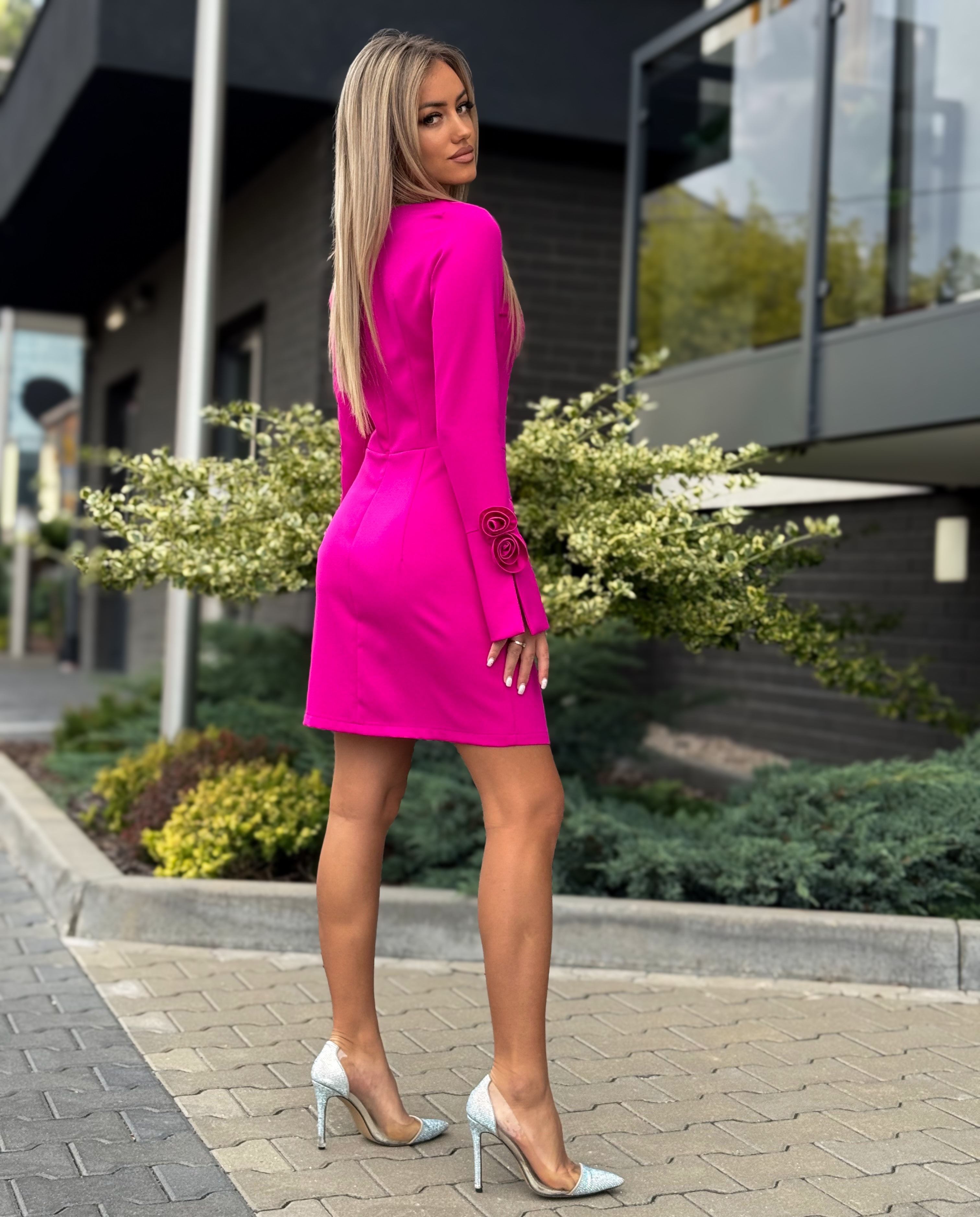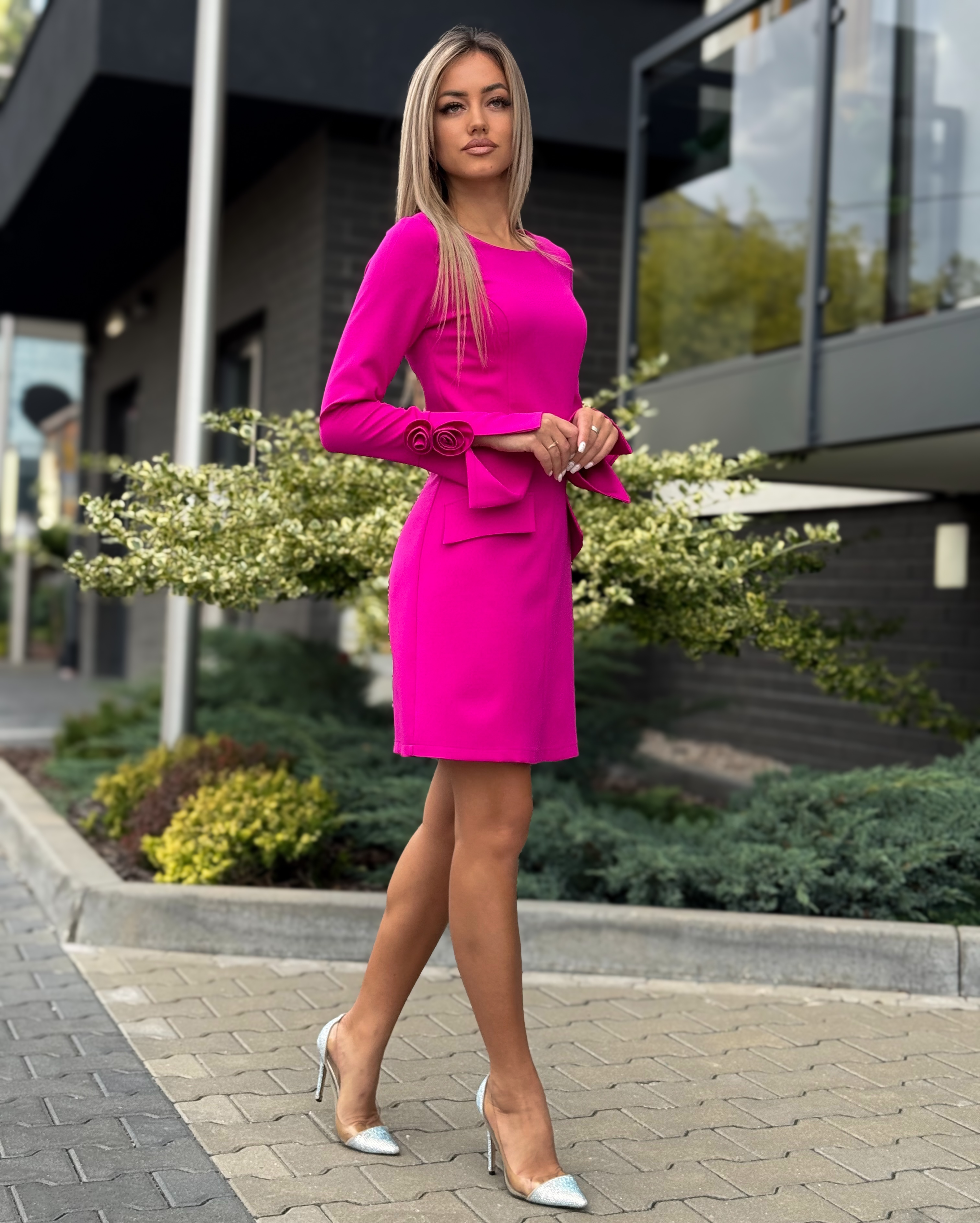 Fuksia pikavarrukaga viisakas kleit
