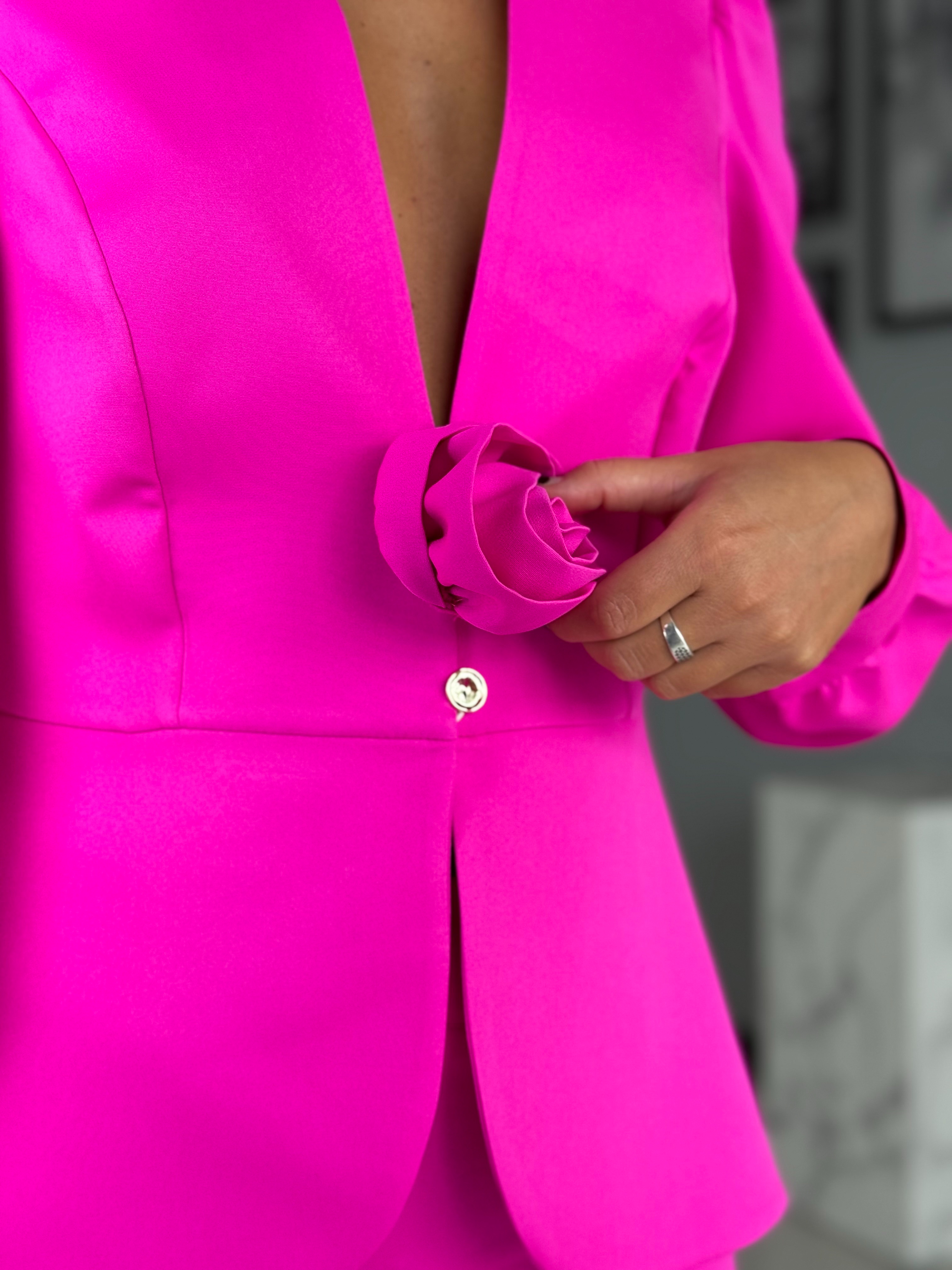 Fuksia seeliku ja pintsakuga viisakas komplekt sobib suurepäraselt pidulikeks sündmusteks, õhtusteks väljaminekuteks, tähtsateks kohtumisteks või stiilseks linnariietuseks.