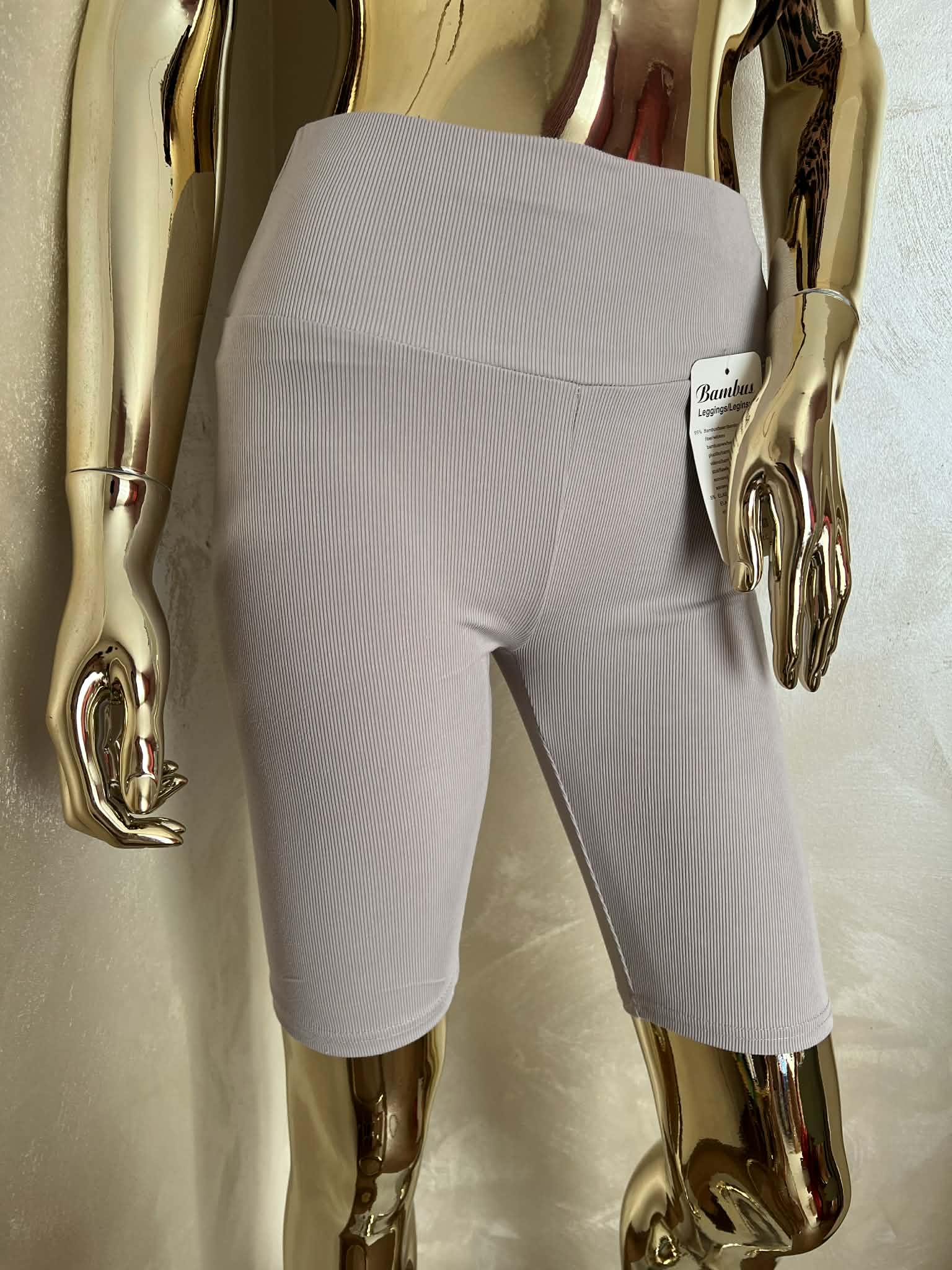 Hallid lühikesed soonitud bambusretuusid on mõnusast hingavast materjalist. Retuusid on kõrge, kummiga värvliga, jalas mugavad ja venivad hästi.