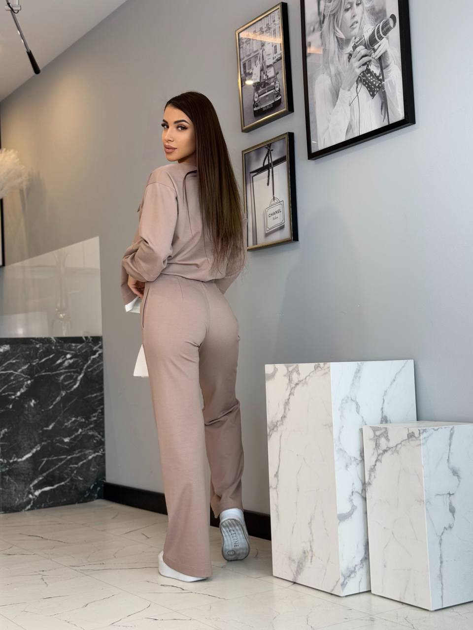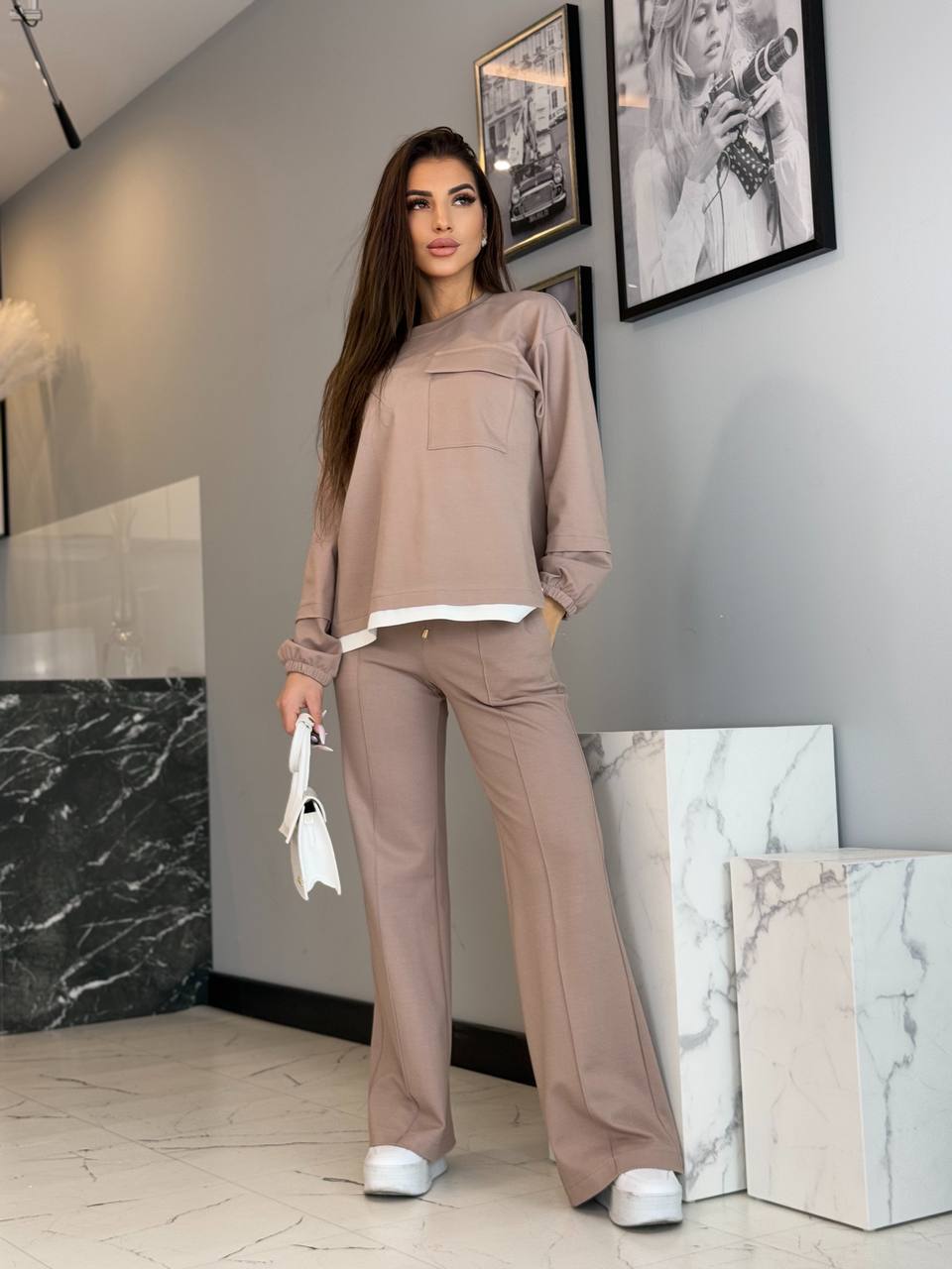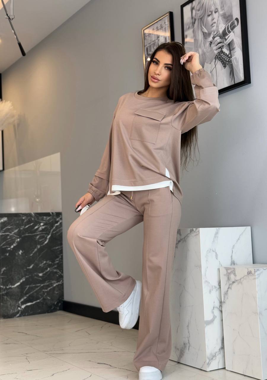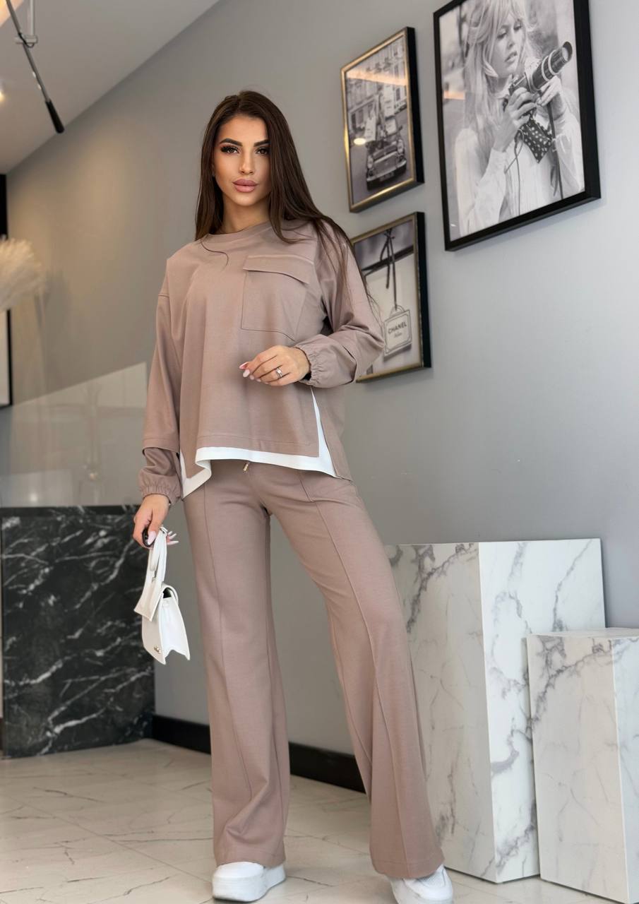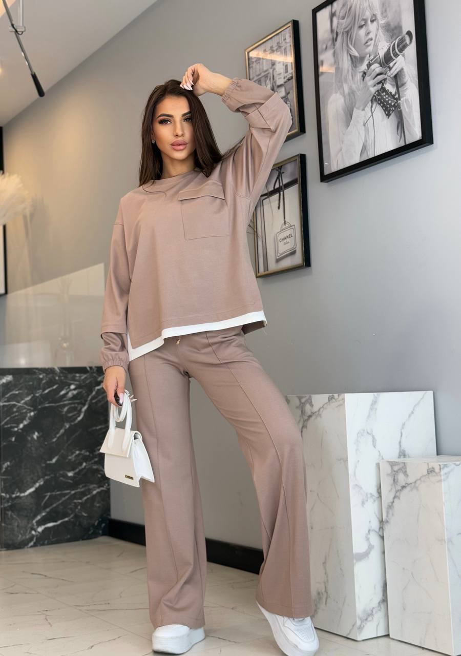Helepruun 2-osaline puuvillane vabaajakomplekt on naisele, kes hindab nii stiilset välimust kui ka liikumisvabadust.