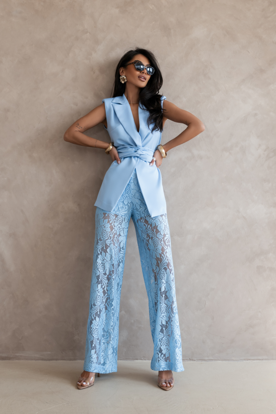 Helesinine pitspükste ja vestiga komplekt naistele – elegantne ja mugav valik igaks päevaks.
