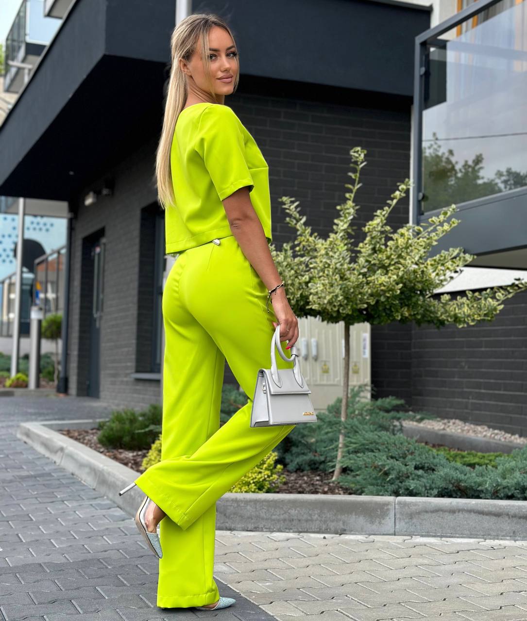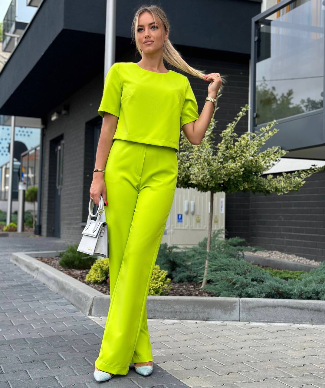 Laimiroheline viisakate pükste ja pluusiga komplekt. Elegantne pükste ja pluusi komplekt on väga kvaliteetsest materjalist ning seega stiilne valik igaks sündmuseks.