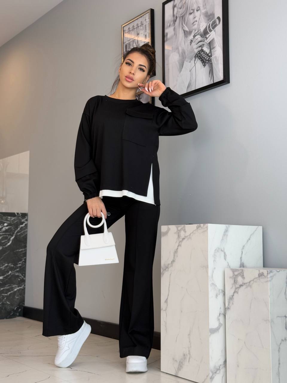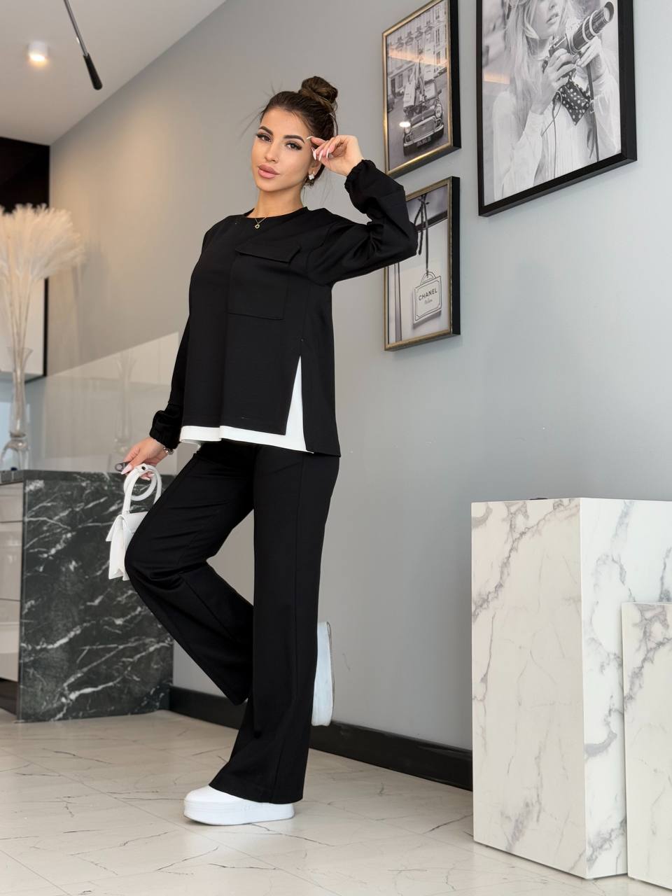 Must 2-osaline puuvillane vabaajakomplekt on naisele, kes hindab nii stiilset välimust kui ka liikumisvabadust.