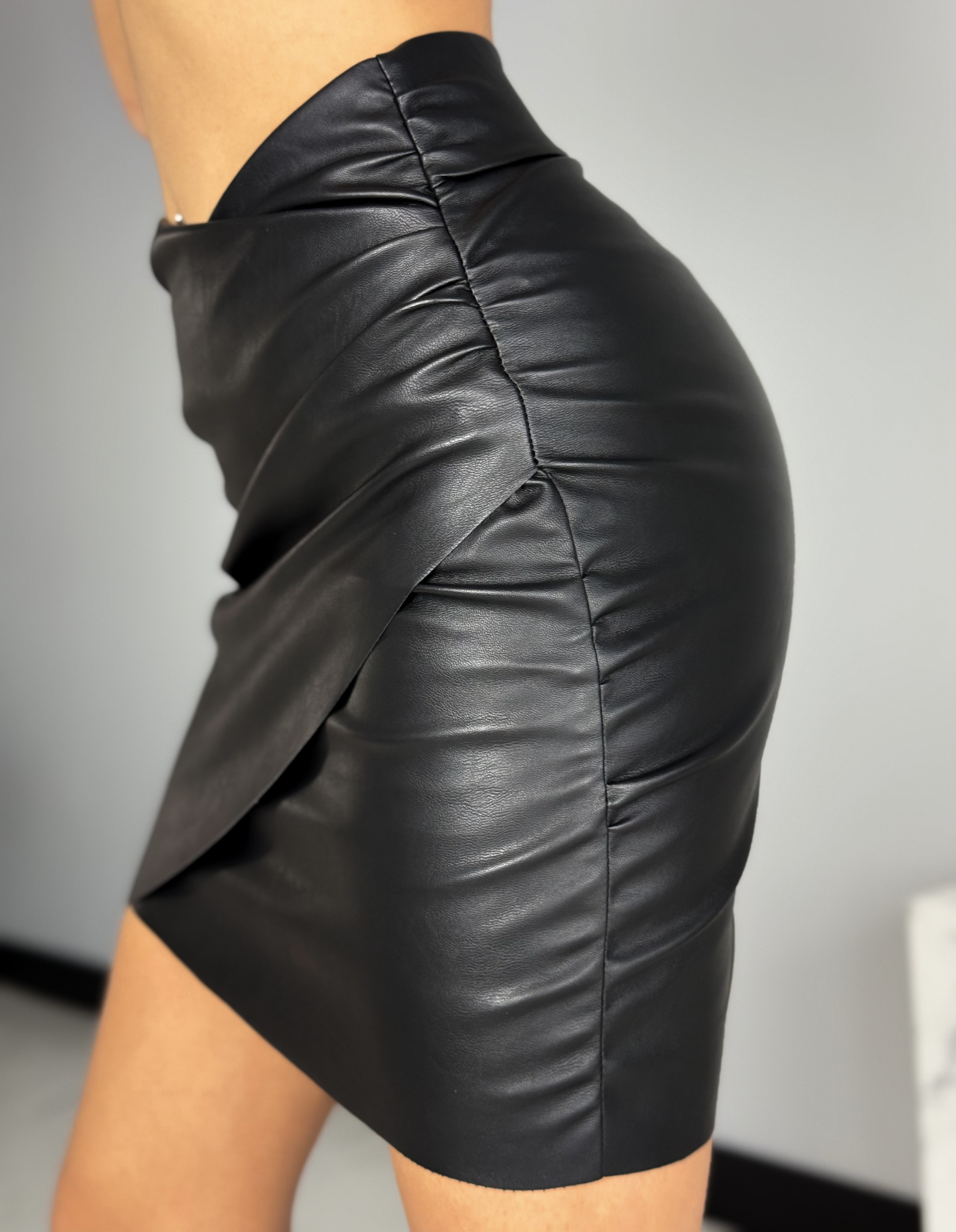 Must kunstnahast miniseelik on tagant kroogitud on ideaalne valik naistele, kes soovivad oma enesekindlust riietuse kaudu väljendada. Klassikaline ja ajatu stiil teeb sellest seelikust mitmekülgse garderoobi põhielemendi. Seda saab kanda nii elegantsetel puhkudel kui ka vabadel koosviibimistel, nähes alati välja stiilne ja šikk. Valge kunstnahast miniseeliku pikkus on kohandatud kehakumeruste rõhutamiseks, säilitades samal ajal mugavuse ja liikumisvabaduse. Elastne vöökoht kohandub ideaalselt figuuriga, tagades mugavuse terveks päevaks, pannes teid igas olukorras erakordselt tundma.