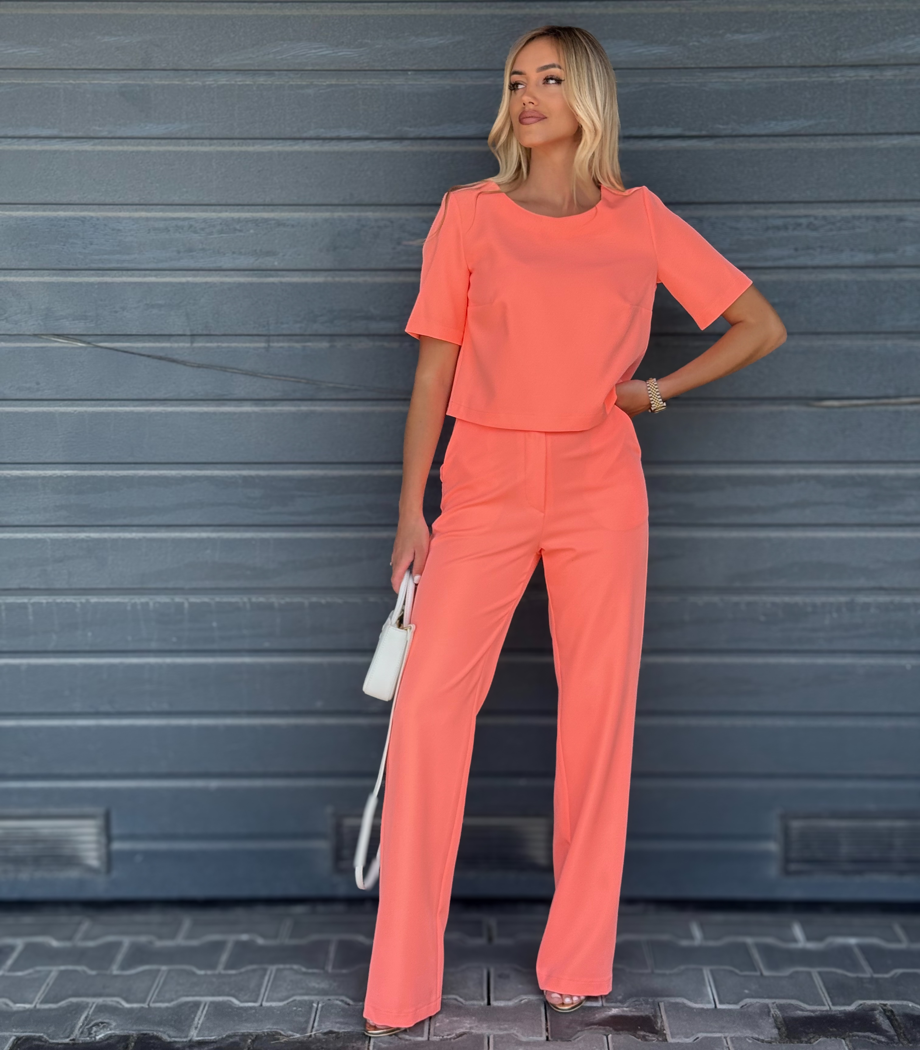 Oranž viisakate pükste ja pluusiga komplekt. Elegantne pükste ja pluusi komplekt on väga kvaliteetsest materjalist ning seega stiilne valik igaks sündmuseks.